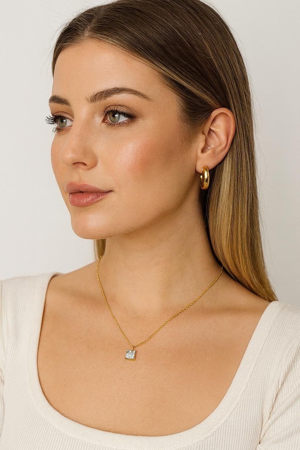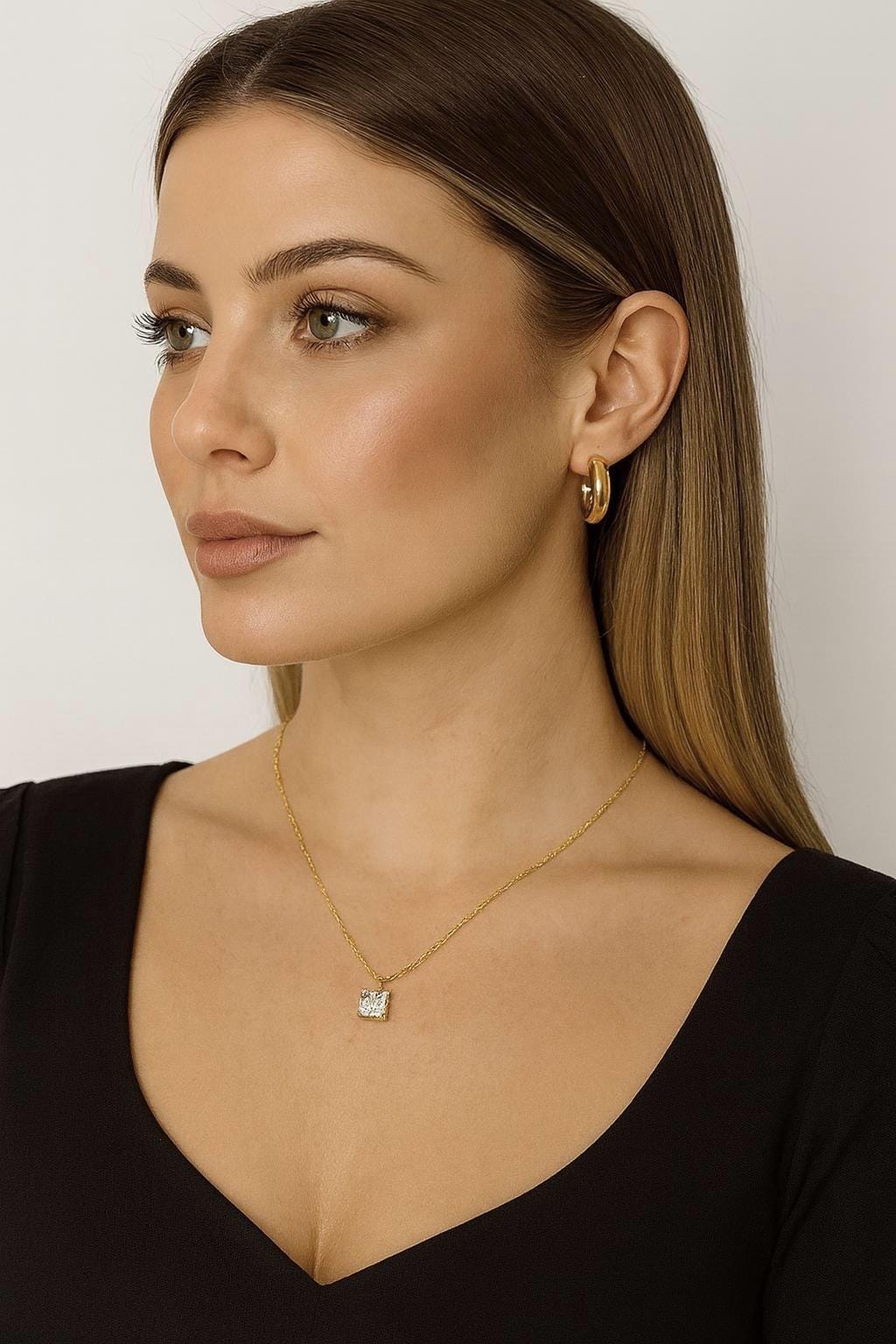 Timeless sparkle for every occasion. This Princess Cut Solitaire Pendant features a brilliant 6x6mm simulated diamond, crafted in solid 925 Sterling Silver or plated in luxurious 14k Yellow Gold. Its classic design transitions effortlessly from everyday wear to special occasions, making it a must-have in every jewelry box.