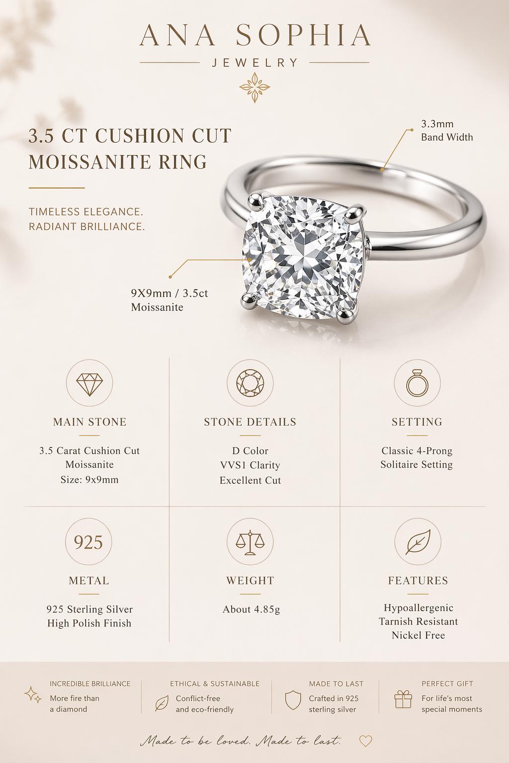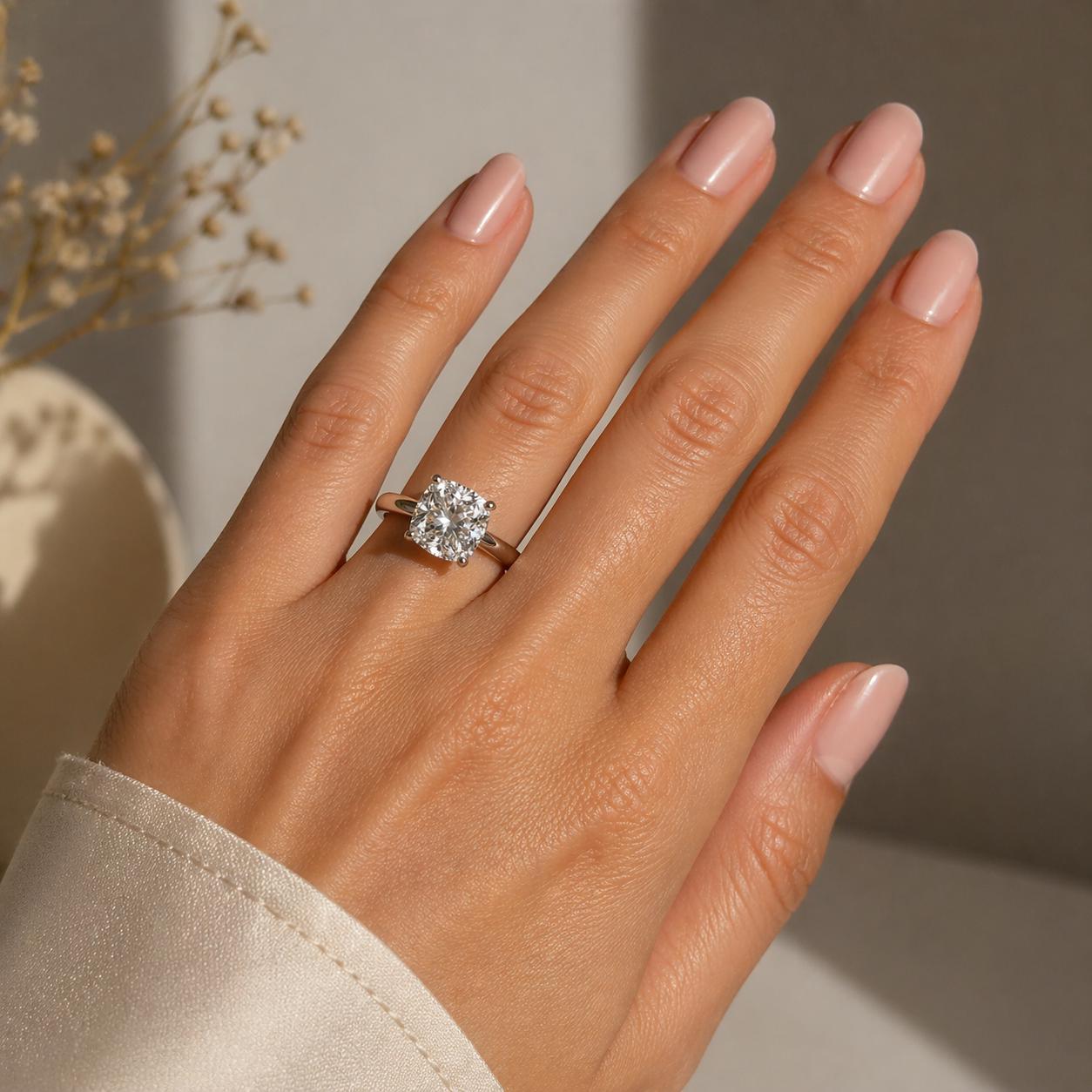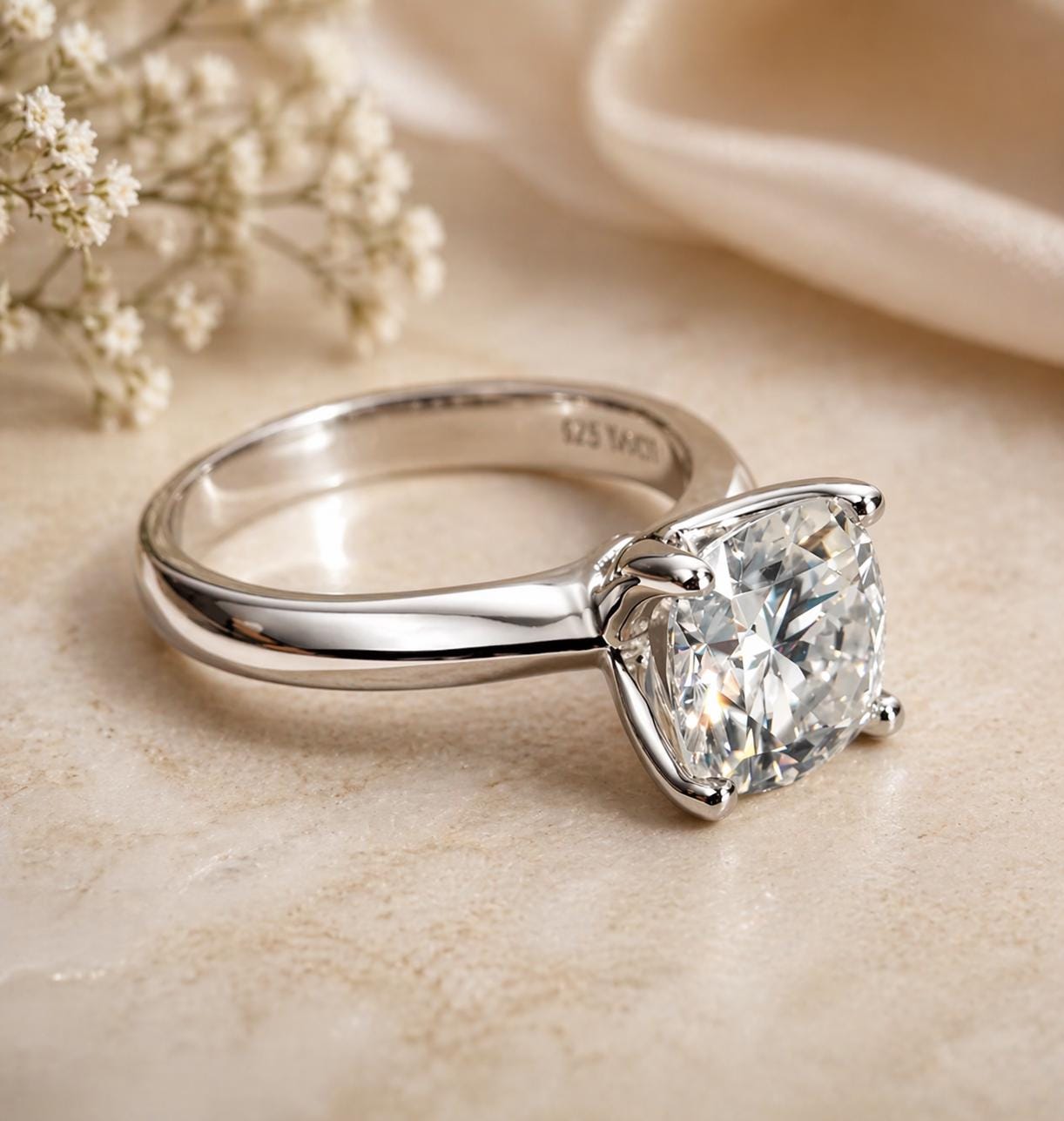 Meet The Allaria Ring — a 3.5 carat cushion cut moissanite engagement ring designed to capture the fire, brilliance, and emotion of a true diamond.
