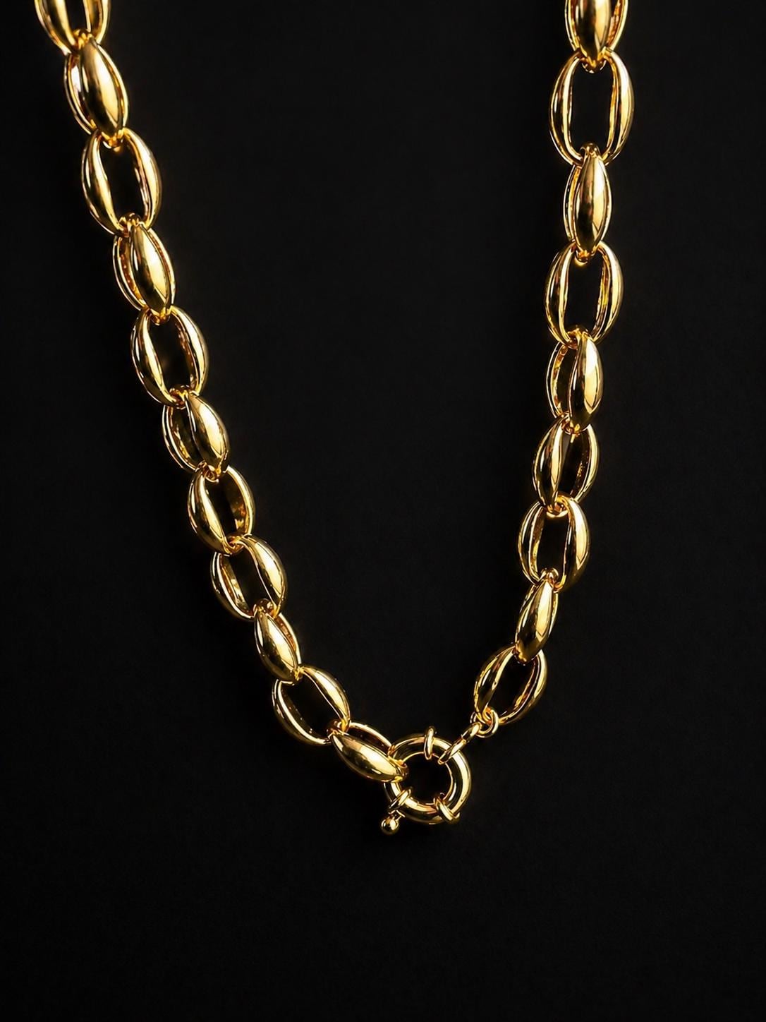 Gold Statement Necklace, Chunky Chain Necklace, Oval Link Necklace, 18K Gold Plated Bold Chain