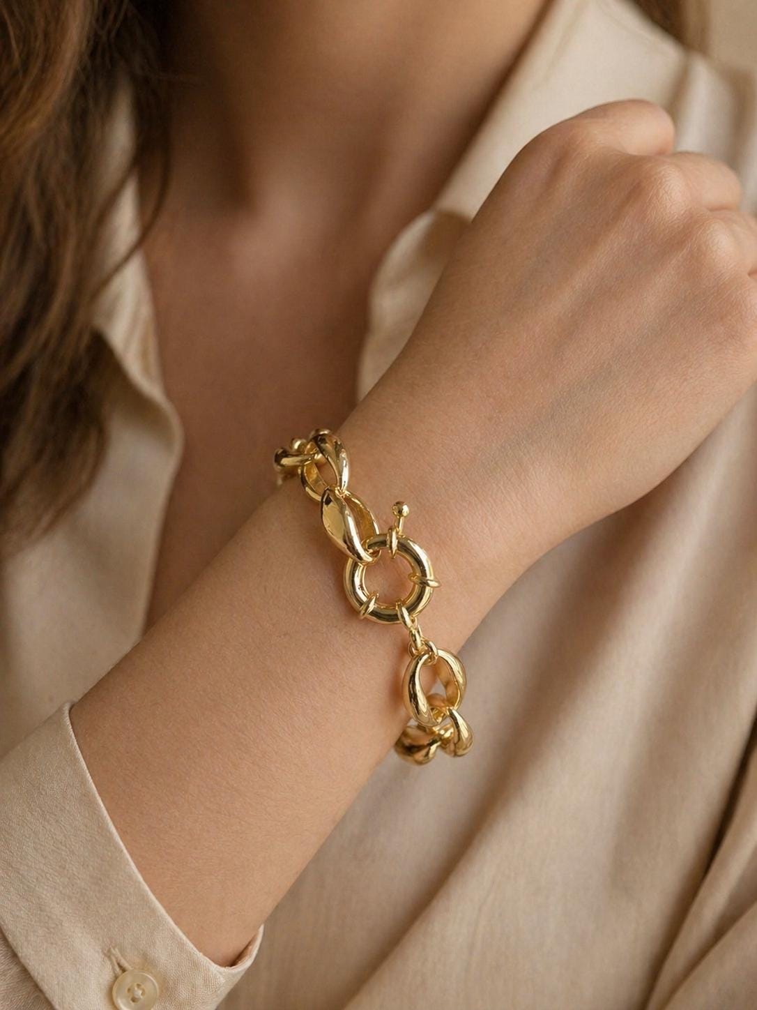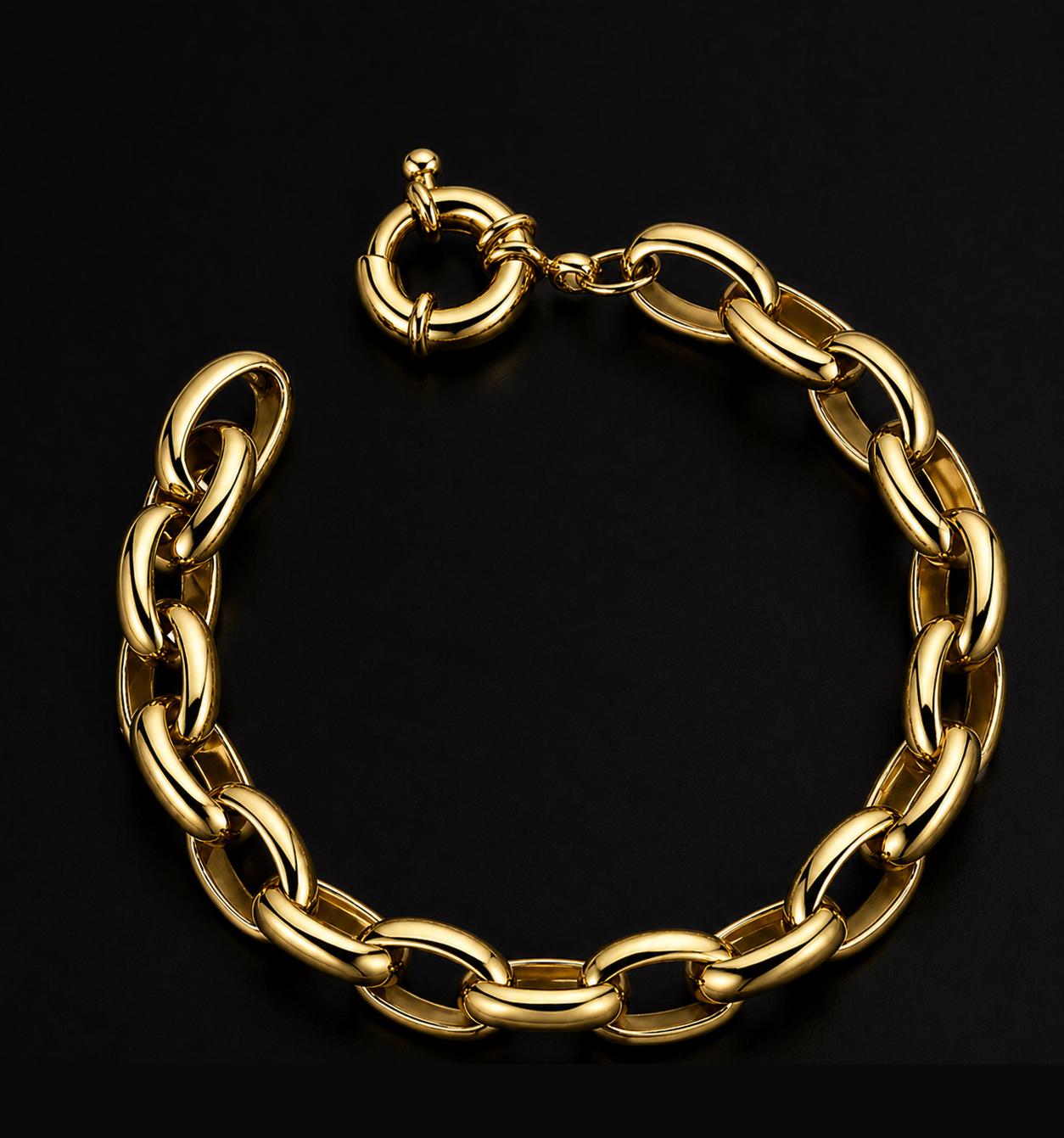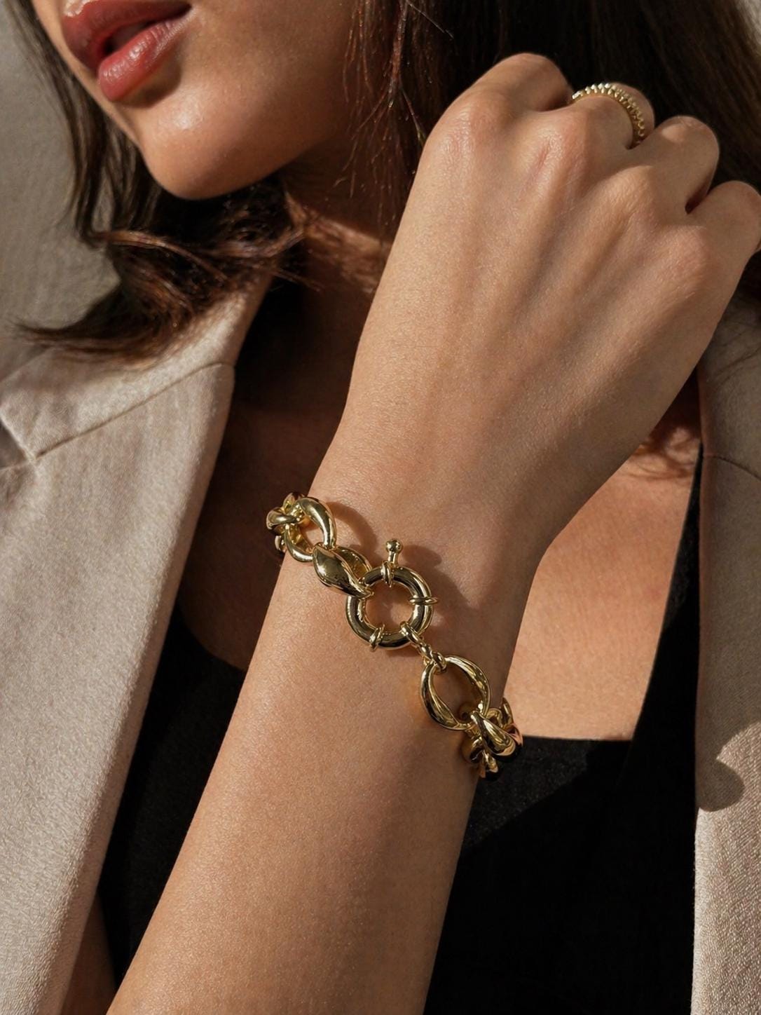Gold Statement Bracelet with bold oval links and a high-polish finish.