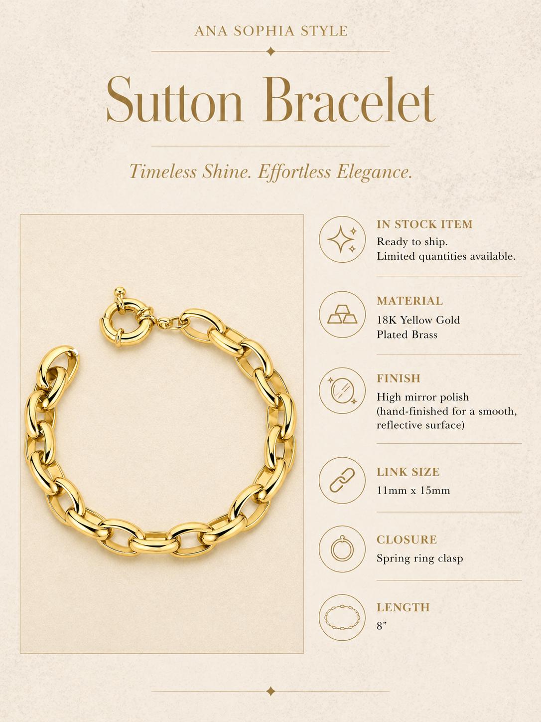 The Sutton Statement Bracelet is designed to stand out — featuring oversized links that reflect light beautifully from every angle.